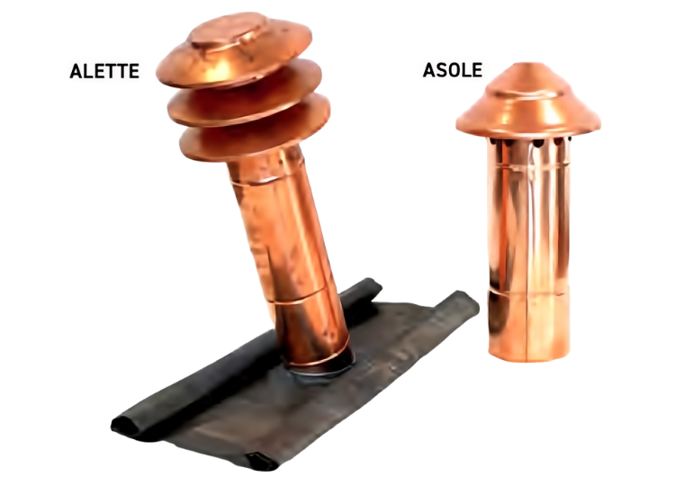 Permettono al vapore acqueo delle cucine di poter fuoriuscire dalla copertura, creano sfiato delle colonne di scarico evitando l’effetto “sottovuoto” nelle tubature.