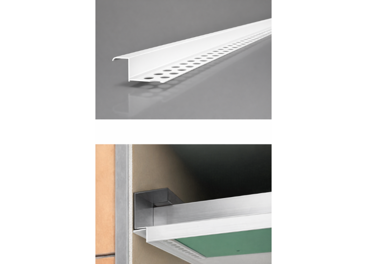 Il profilo perimetrale per controsoffitto in cartonassi si usa per creare la fuga tra le lastre che incontrano le pareti; evitano quindi crepe sull’angolo delle lastre causate dai movimenti della parete e creano una finitura ottimale e regolare tra il controsoffitto e le pareti.