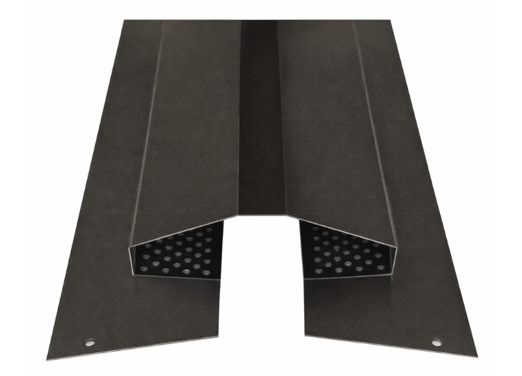 La ventilazione viene garantita dalla sezione microforata centrale che permette un passaggio d’aria costante; i fori del tessuto microforato sono calibrati per impedire l’ingresso di insetti o neve trascinata dal vento. - Rigidi: a differenza dei rotoli sottocosto, sono elementi preformati in metallo; sono elementi modulari rigidi lunghi 1-2m che si fissano meccanicamente alla linea di colmo sul listello di ventilazione.