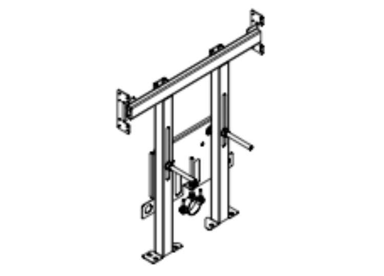 Elementi e telai assemblati in acciaio appositamente studiati per il fissaggio di sanitari sospesi nelle pareti o controparte in cartongesso.